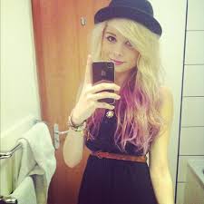 1. Her natural brown colour with lavender at the top, then fades to electric blue.